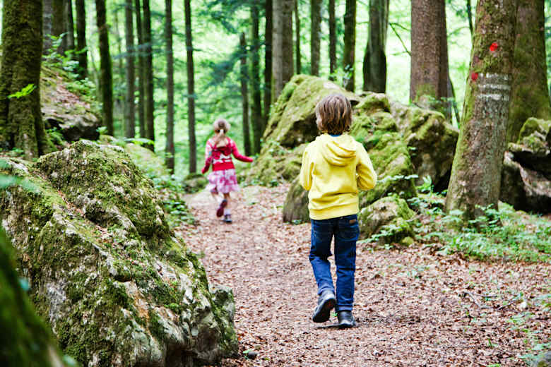 Eine kurze aber eindrucksvolle Wanderung bei Ruhpolding für die ganze Familie findet sich im im bayrischen Chiemgau. Ein Freizeitpark mit über 40 Attraktionen liegt entlang der Strecke. Einkehrmöglichkeiten gibt es im Freizeitpark.