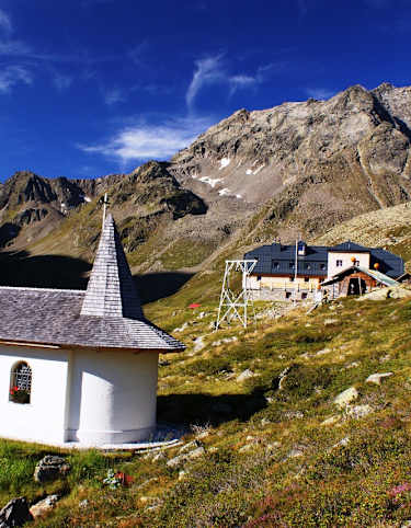 Von dort kann man von einer kleinen Zollhütte aus die Aussicht genießen. Mit der Bremer Hütte ist auf 2.411 m das Etappenziel erreicht.