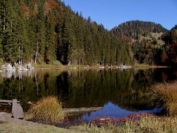 Diese anspruchsvolle Rundwanderung führt einem zum Taubensee bei Schleching im bayrischen Chiemgau auf circa 1.150 m Seehöhe. Die Tour besticht durch eine Vielzahl von schönen Aussichtspunkten. Gute Einkehrmöglichkeiten bieten entlang des Weges die Chiemhauser Alm, die Taubenseehütte und der Gasthof Streichen.