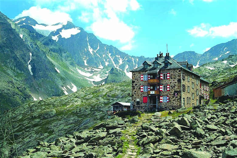 Die zweite Etappe des Stubaier Höhenweges in Tirol führt von der Bremer Hütte hinauf auf das Simmingjöchl (2.754 m), wo man von einer kleinen Zollhütte aus die Aussicht auf die Stubaier Alpen genießen kann. Nach einem langen Abstieg durch die eindrucksvolle Gletscherlandschaft durchwandert man das „Paradies“. Zuletzt folgt ein kurzer, flacher Anstieg zur Nürnberger Hütte auf 2.297 m.