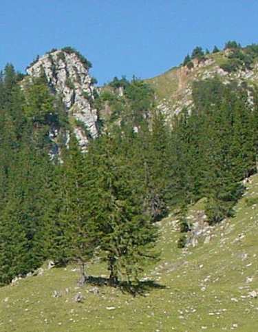 Zunächst geht es ein Stück des Aufstiegsweges vom Gipfel zurück und man folgt den Wegweisern rechts über eine Almwiese zu einem leerstehenden Häuschen. Hier links halten. Achtung, später den etwas versteckten Steig mit der Beschilderung „Nur für Geübte" nicht übersehen. Von hier geht es einen engen Steig in steilen und schmalen Kehren auf der Südwestseite des Vorderen Rauschberges bergab. In schwierigem Gelände wandert man durch lichten Hangwald. Den Wegweisern folgt man über Rauschberglahner, Rossgasse und Pointergraben wieder Richtung Fahrriesbodenkapelle und zum Ausgangspunkt.