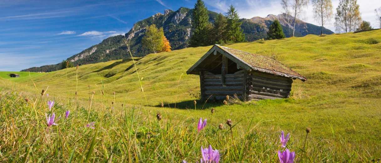 Die Wanderung über die Buckelwiesen beginnt im Geigenbauerort Mittenwald. Im historischen Ortskern Gries startet der Weg hinauf zum Berggasthof Gröblalm. Hier beginnt der Wanderweg 839, der zunächst durch ein kurzes Waldstück und dann weiter zum Schmalensee führt. Auf der Ostseite des Sees wandert man auf dem sehr gut präparierten Weg entlang. Nach einem kurzen Anstieg erreicht man eine alte Bahnbrücke, die man unterwandert. Direkt hinter der Brücke hat man nun die erste Aussicht auf die berühmten Buckelwiesen. Der Weg verläuft weiterhin gemächlich bergauf, bis man den höchsten Punkt auf 980 m erreicht. Von hier an geht es bergab Richtung Krün, davor lohnt sich jedoch noch ein kurzer Halt an der wunderschönen Kapelle Maria Rast. Nun wandert man durch den Ortskern von Krün hindurch bis zur Isarbrücke. Diese überquert man und geht immer am Bergfuß neben der Isar entlang bis nach Wallgau. Mit dem Bus zurück nach Mittenwald.