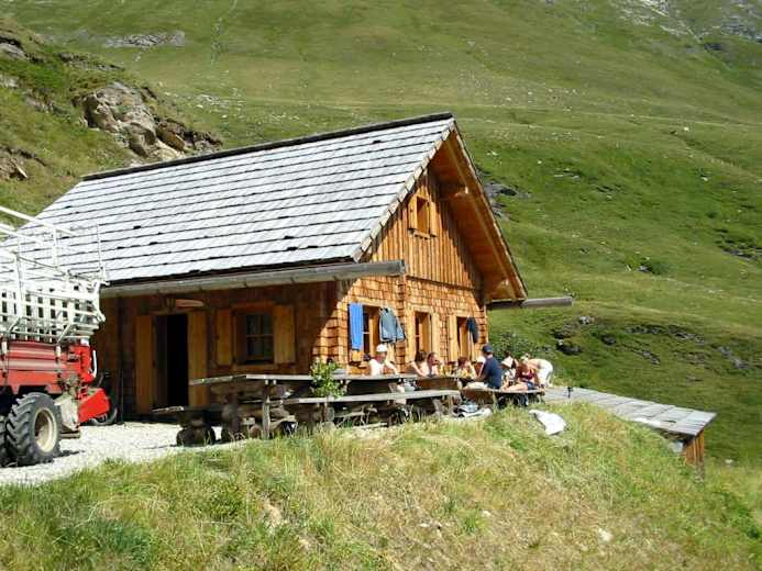 Danach geht es über den Wanderweg Nr. 16 in circa 2 h zur gemütlichen Lanisch-Ochsenhütte, wo die Hüttenleute Sandra und Andreas Taschler zu einer kleinen Stärkung einladen.