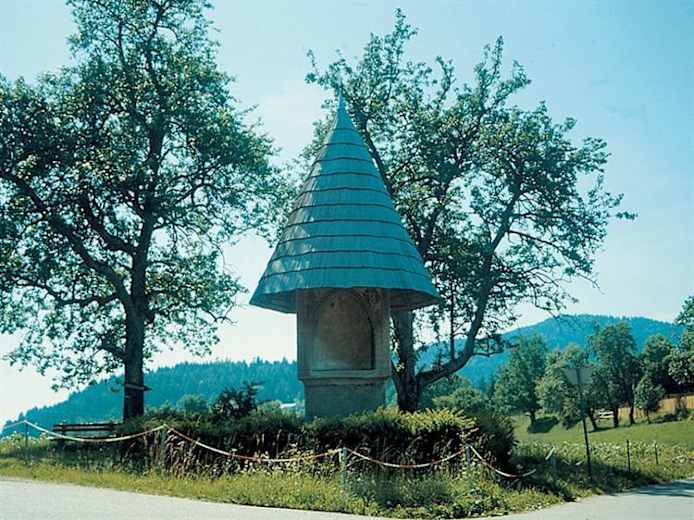 Los geht es beim Bildstock in Karl. Von dort wandert man entlang eines Schotterweges zum höchstgelegenen Bauernhof der Gemeinde Techelsberg. Entlang eines Waldweges geht es dann weiter zum Gipfel des Taubenbühels.