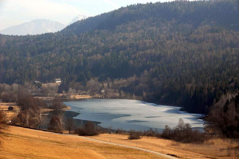 Vom Karutschnigfelsen, einem senkrechten gesicherten Abbruch, bietet sich ein herrlicher Ausblick. Weiter geht es zur Buschenschank Kesnar und über Wurdach geht es auf dem Weg 36A wieder zum Weg 34. Entlang des Bassgeigensees wandert man nun zurück nach Keutschach.