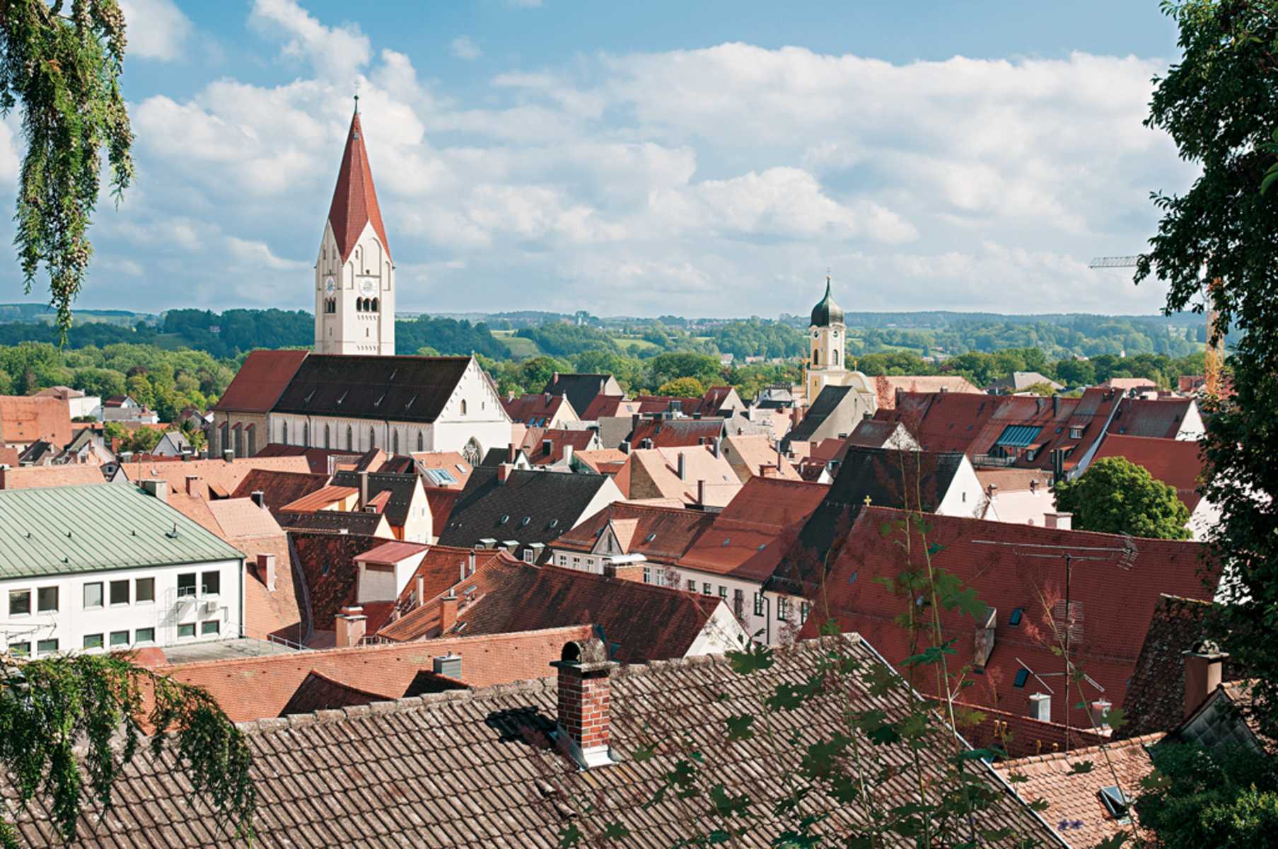 Vom Weg an der alten Stadtmauer blickt man auf die Altstadt Kaufbeurens. Foto: Christian Rauch