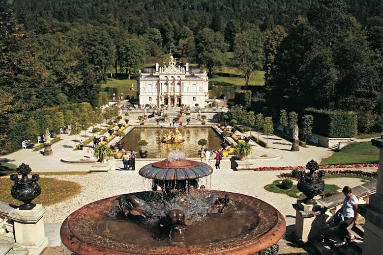 Das Schloss Linderhof aus dem Jahr 1878 mit seinem englischen Landschaftspark und der Lage im Graswangtal ist einer der kulturellen Höhepunkte des Maximilianswegs und der Endpunkt einer kleinen „Schlösser“-Route. Ludwig II. ließ auf der Basis eines Jagdhauses seines Vaters eine Art Versailles im Kleinformat bauen. Rund um das neobarocke Schlösschen gibt es versprenkelte architektonische Kleinodien, die die Fantasie anregen können.