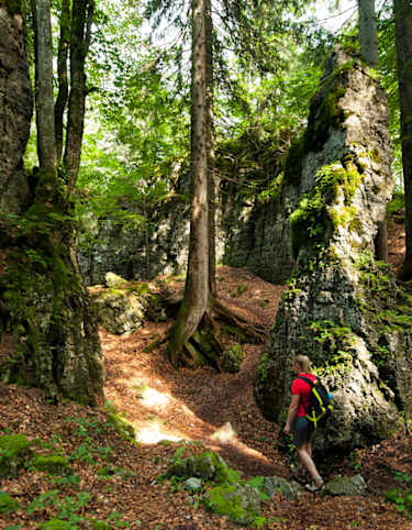 Auch in den heißen Monaten eine gute Option, ist diese eher schattige Wanderung durch den Wald auf die Nesslauer Alm (1.101 m) in den Chiemgauer Alpen im Oberbayern. Auf dem Weg gibt es im Märchenwald mystische Grotten zu entdecken, und die Möglichkeit sich zu erfrischen hat man am Wasserfall, der nur zehn Minuten von der Nesslauer Alm entfernt ist.