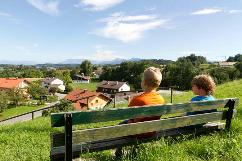Unweit vom Tachinger- und Waginger See im bayrischen Chiemgau, bietet der leichte und familienfreundliche Barfußwanderweg wunderbare Ausblicke über die beiden Seen in die hohen Berge bis zum Dachstein-Gletscher und Hohenfeste Salzburg.
