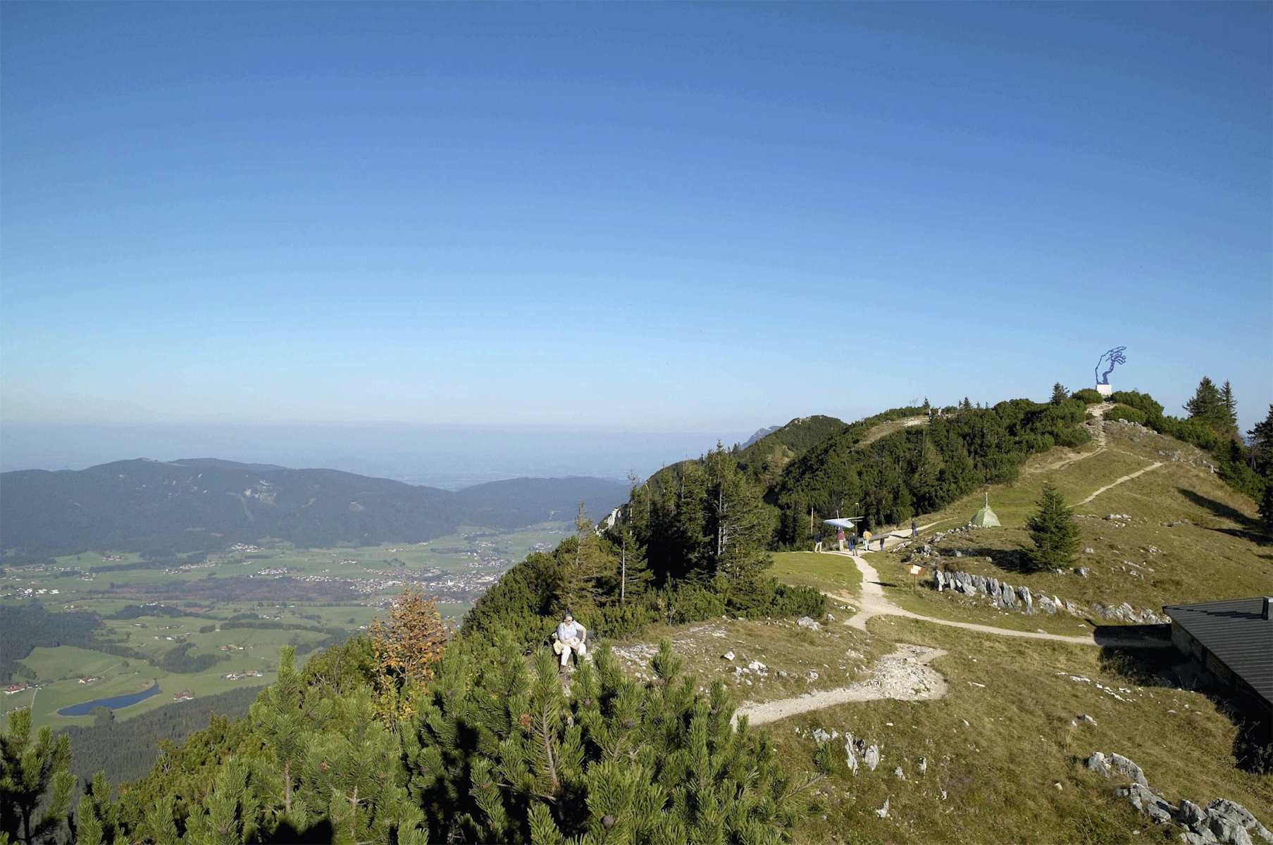 Auf dem Gipfel des Vorderen Rauschberges befinden sich neben dem üblichen Gipfelkreuz auch wundervolle Kunstwerke des Künstlers Walter Angerer. Eines davon nennt sich „Hand Adams“. Diese mächtig aufragende Skulptur ist - wohl als Reminiszenz an die Verankerung des christlichen Glaubens in Bayern - in Richtung Rom ausgerichtet. „Wer die Hand sieht, der weiß, in welcher Richtung Rom liegt“, so der Künstler. Für das opulente Werk wurden per Hubschrauber zwei Tonnen Eisen herbeigeschafft und vor Ort montiert.