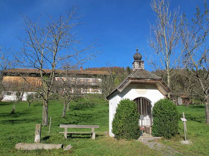 Klein- und Flurdenkmäler der Gemeinde Bergen sind das Thema auf dem Kultur-Rundwanderung. Diese sehr leichte Tour in den Chiemgauer Alpen in Bayern nahe Bernhaupten ist toll für die ganze Familie, der Weg führt durch die Ortsteile Hausen, Zwing, Gries und Weißachen, der höchste Punkt liegt auf 568 m.