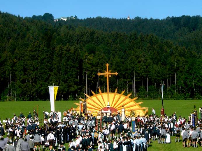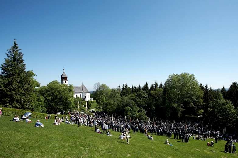 Immer am 3. Sonntag im Mai findet in Maria Eck die große Trachtenwallfahrt des Gauverbandes der Krieger- und Soldatenkammeradschaft statt.