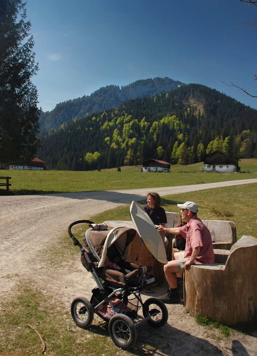 Diese familienfreundliche Wandertour im südöstlichen Bayern (Chiemgau), bei Ruhpolding/Urschlau, bietet fast das ganze Jahr über schöne Bergwalderlebnisse und einen imposanten Blick in eine Klamm zwischen den Almen und der Klausbrücke.