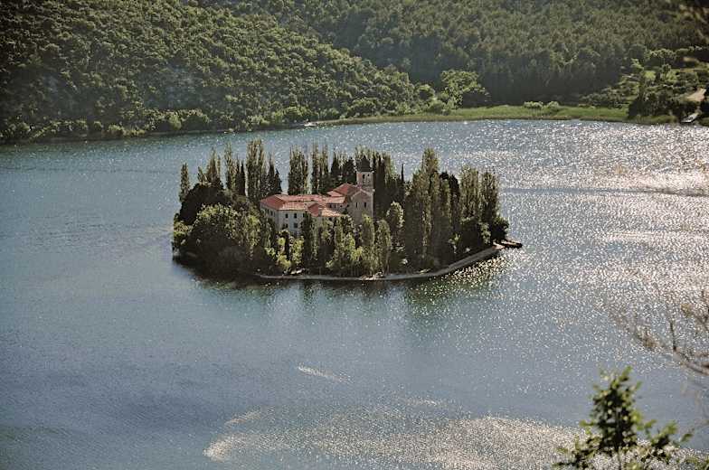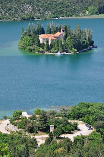 Im Mittelpunkt steht unübersehbar der blaugrüne Visovac-See mit der Klosterinsel, welche eine mystische Ruhe und Stille ausstrahlt.