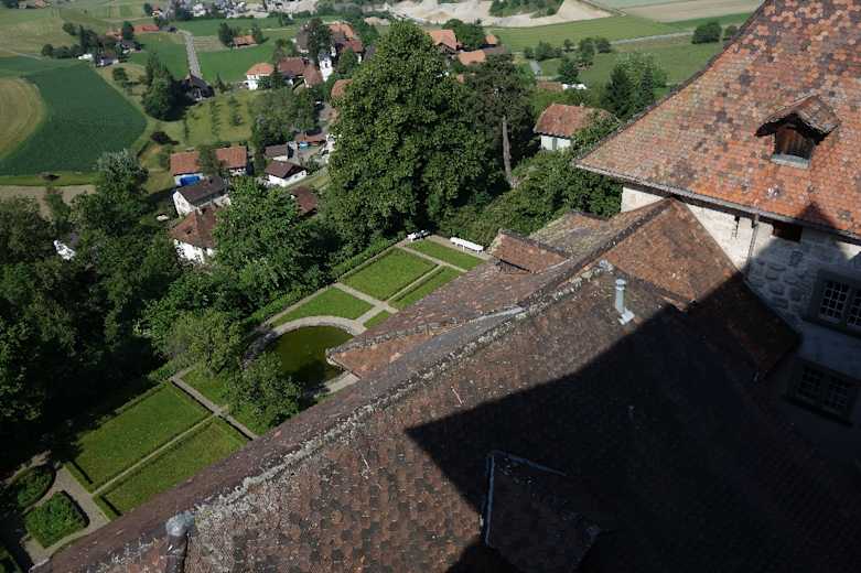 Durch die gedeckte Treppe hinab zur Gartenanlage (wenn geschlossen, folgt man der Straße außen herum); bei ihrem Eingang Gedenkstein für Albert Bitzius sowie Infotafel zum Schloss. Ihm war einst eine Armenerziehungsanstalt angegliedert, die Gotthelf mitbegründen half. 1892 eröffnete der Kanton Bern im Schloss eine Jugendstrafanstalt, die zu einem „Ort des Schreckens“ wurde, wie es heißt. Einer der Insassen war der Schriftsteller Carl Albert Loosli, der 1924 in „Anstaltsleben“ die schlimmen Verhältnisse offenlegte.