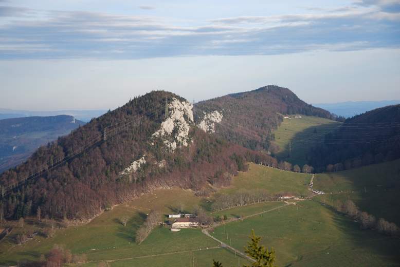 Auf einem schmalen Pfad nordwärts auf eine Weide, ca. 1.060 m, und zum Wander- und Jurahöhenweg. Er führt südlich unter dem Rosschopf durch und über den Kamm der Breitflue aufs Hällchöpfli, 1.232 m, wo man grad knapp neben dem Zaun der militärischen Anlage zum Kulminationspunkt vordringen darf.