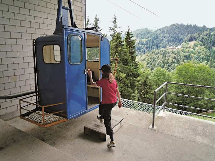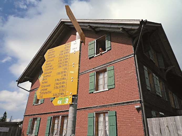Auf ihr zur Talstation der Seilbahn von Schwändi, 1.033 m, nach Oberlänggrat, 1.149 m – die Fahrt über den tief eingeschnittenen Goldbach ist ein besonderes Erlebnis. Die Kabine muss vor Ort kurbelnd oder telefonisch bestellt werden.