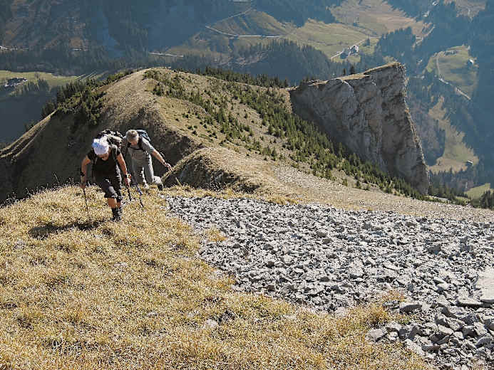 Aufstieg auf dem Wanderweg zum Schibegütsch; 3:30 Std., T2, oben kurze Stellen T3.