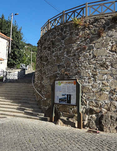 Geradeaus, in Richtung Farmácia (Apothke) und am kleinen Laden vorbei gelangen wir zum Hauptplatz von Parada de Sil (45 Min.) mit einer Informationstafel zum PR-G 98. Geradeaus ist der direkte Weg nach Fondodevila angezeigt.
