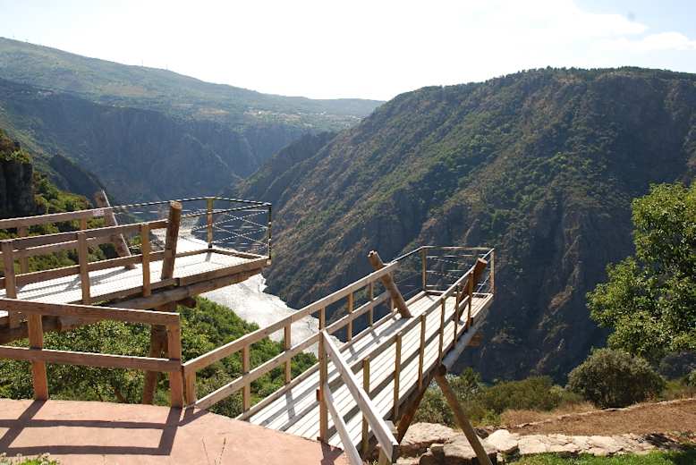 Von der recht spektakulär angelegten Aussichtsplattform im Campingplatz bietet sich ein herrlicher Ausblick in den tief eingeschnittenen Flusslauf des Sil.