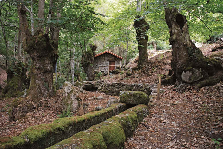 Naturerlebnis mit kulturellem Höhepunkt im spanischen Galicien: Diese lange Rundtour lässt an Abwechslungsreichtum kaum Wünsche offen. Nach einem gemächlichen Auftakt führt sie hinab zu den tief im Waldtal gelegenen alten Mühlen von Entrambosríos und erklimmt anschließend durch einen kleinen Weinberg den südlichen Hang des Sil-Tals mit der ersten großen Attraktion der Tour.