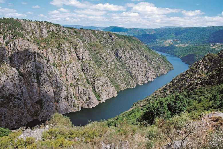 Von den Aussichtspunkten Balcones de Madrid schaut man aus der Vogelperspektive in die bis zu 500 m tief eingeschnittene Schlucht des Río Sil. Den kulturellen Glanzpunkt setzt dann das versteckt im Wald, hoch über dem Sil-Tal gelegene Monasterio de Santa Cristina de Ribas de Sil. Die erstmals im 10. Jh. schriftlich erwähnte Benediktinergemeinschaft entwickelte sich im Mittelalter zum bedeutendsten Kloster der Ribeira Sacra. Ab dem 15. Jh. verlor es an Einfluss, nach einer unrühmlichen Karriere als Viehstall im 19. Jh. zeigen sich die behutsam restaurierten Gemäuer wieder als schönes Beispiel galicischer Romanik.