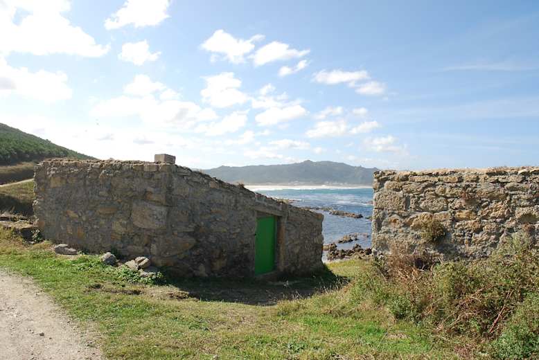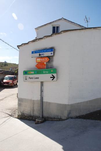 Von der Touristeninformation in Laxe gehen wir auf der Promenade nordwärts, achten jedoch noch ein gutes Stück vor der Kirche auf die Wegmarkierung nach links (Schild „Faro de Laxe“), gehen gleich wieder rechts und durch den Torbogen der Casa do Arco hindurch zur trutzigen Kirche (Iglesia de Santa María de la Atalaya, 15 Jh.; diente auch als Wach- und Schutzgebäude vor Angriffen von Seeseite. Schöner Innenraum).