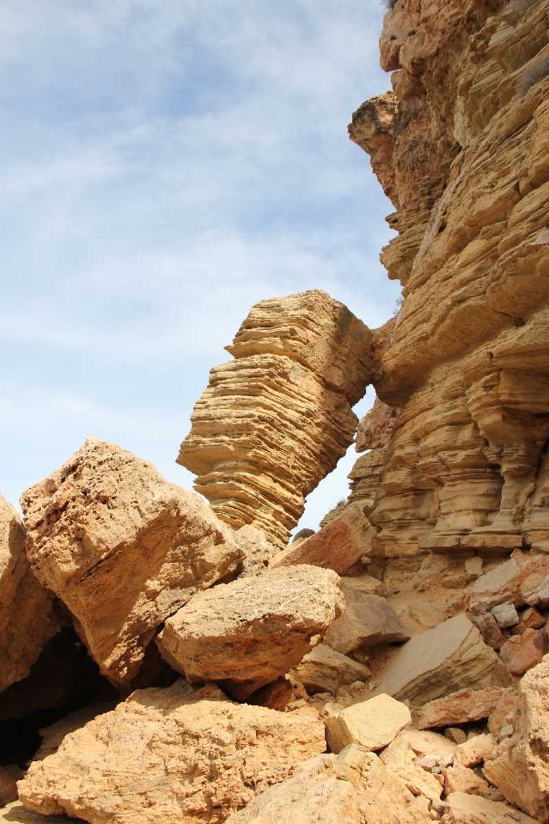 Vor diesem gehen wir durch zwei Steinpoller scharf links ein Torrentbett hinab und kraxeln das letzte Stück am Fuß einer Steilwand über Felsen zur Cala Llosar. Am Fuß der Wand liegen zahllose von der Wand abgebrochene Felsblöcke herum, doch es gibt auch flache Liegeplätze, auf denen man rasten kann. Interessant ist eine Felsspalte mit einem kleinen Schrein. Nach der Rast wandern wir auf gleichem Weg wieder zur Caló des Moro zurück.