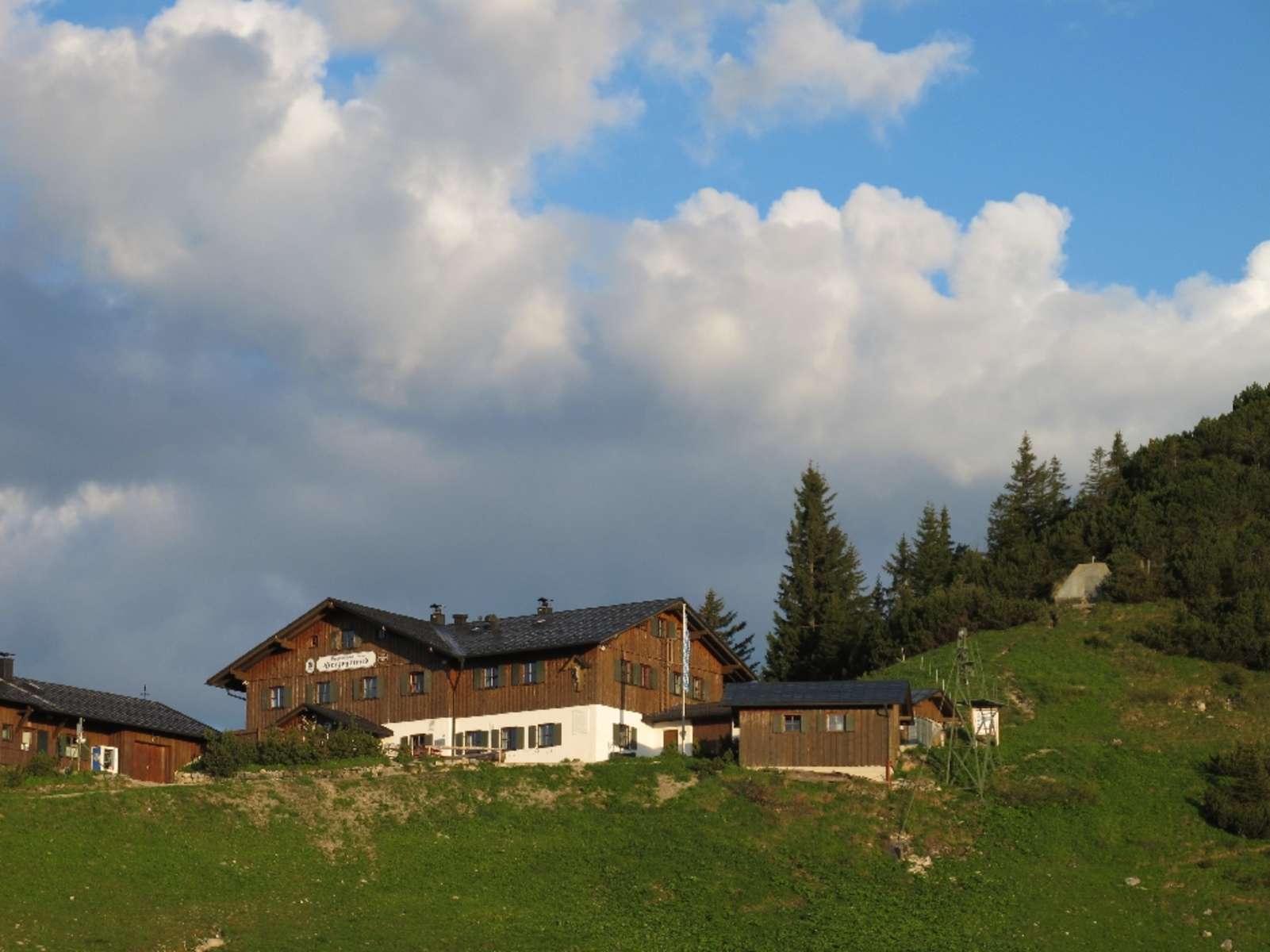 Eine kreuzgeschmückte Gratkuppe, 1.666 m, wird südseitig umgangen; zuletzt steigt der Weg am Rand felsiger Abbrüche hinauf zum Heimgarten, 1.791 m. Am zweiten Gipfel gibt’s dann nochmals eine tolle Rundschau, dazu Gelegenheit, sich in der kleinen Heimgartenhütte angemessen zu stärken: auf der Terrasse mit Zugspitzblick oder auch im „Rotweineck".