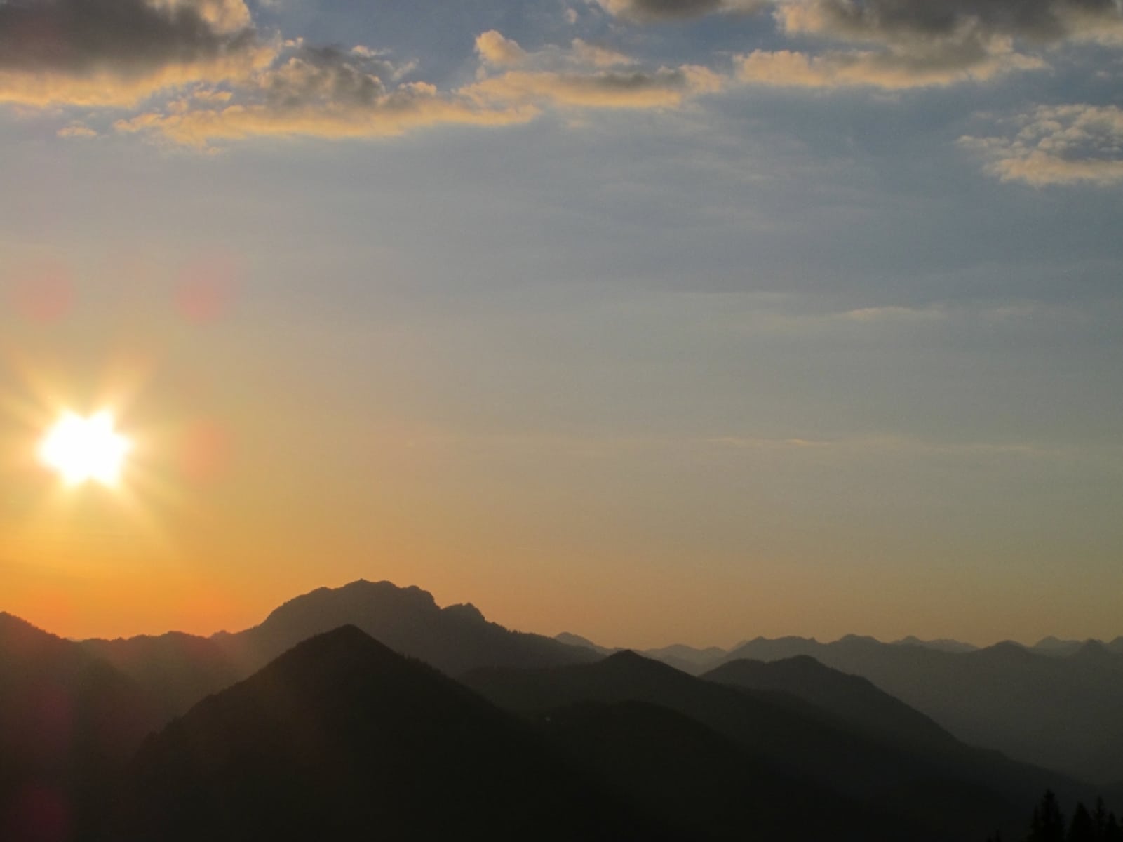 Das Panorama verdient locker drei Sterne, geht so weit in die Alpen wie hinaus ins Vorland. Nachbargipfel im Westen ist der Heimgarten (1.791 m), noch etwas höher als der Herzogstand und mit diesem durch eine Wegspur verbunden. Die Gratwanderung beginnt mit einem kurzen Schrofenabstieg, dann läuft das Steiglein direkt am schmalen Grat entlang. Seilgeländer und Fixseile sichern die etwas ausgesetzten Passagen, beruhigen ängstlichere Gemüter. Packend die Tiefblicke nördlich zum Kochelsee.