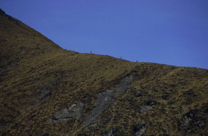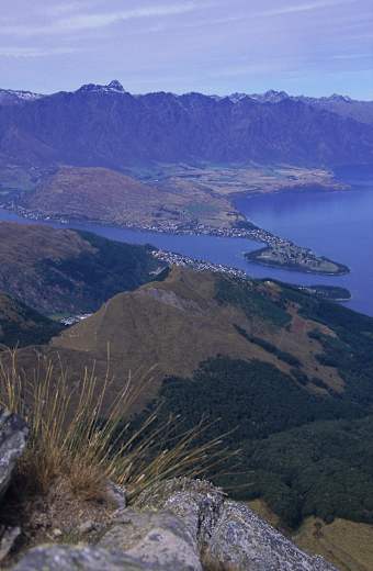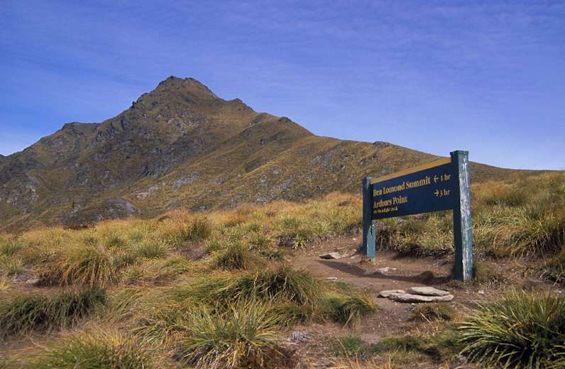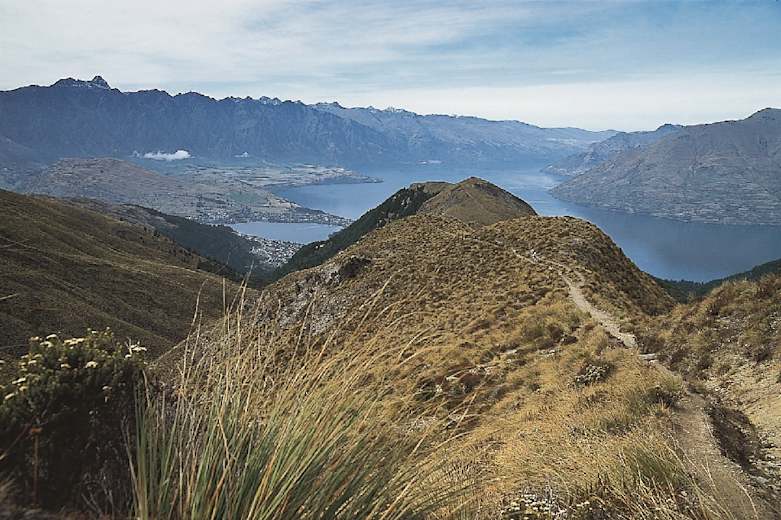 Ein felsiger Pfad windet sich entlang des luftigen Kammrückens hinauf und in einem kleinen Bogen um den Gipfel, um die letzten Meter zum Ben Lomond (1.748 m) schließlich von Norden aus zu erklimmen. Ein traumhafter Panoramablick belohnt uns: nach Süden über den gesamten Lake Wakatipu und die umliegenden Bergzüge der Remarkables, nach Osten auf die Tallandschaft und die Felder von Arthurs Point, Moke Lake im Westen und die erhabenen vergletscherten Berge des Mt.-Aspiring-Nationalparks im Norden. Und das alles hoch über den zahlreichen Ausflugsbooten, Sportflugzeugen, Gleitschirmfliegern und Bungee-Jumpern von Queenstown, in das wir schließlich auf demselben Weg zurückkehren.