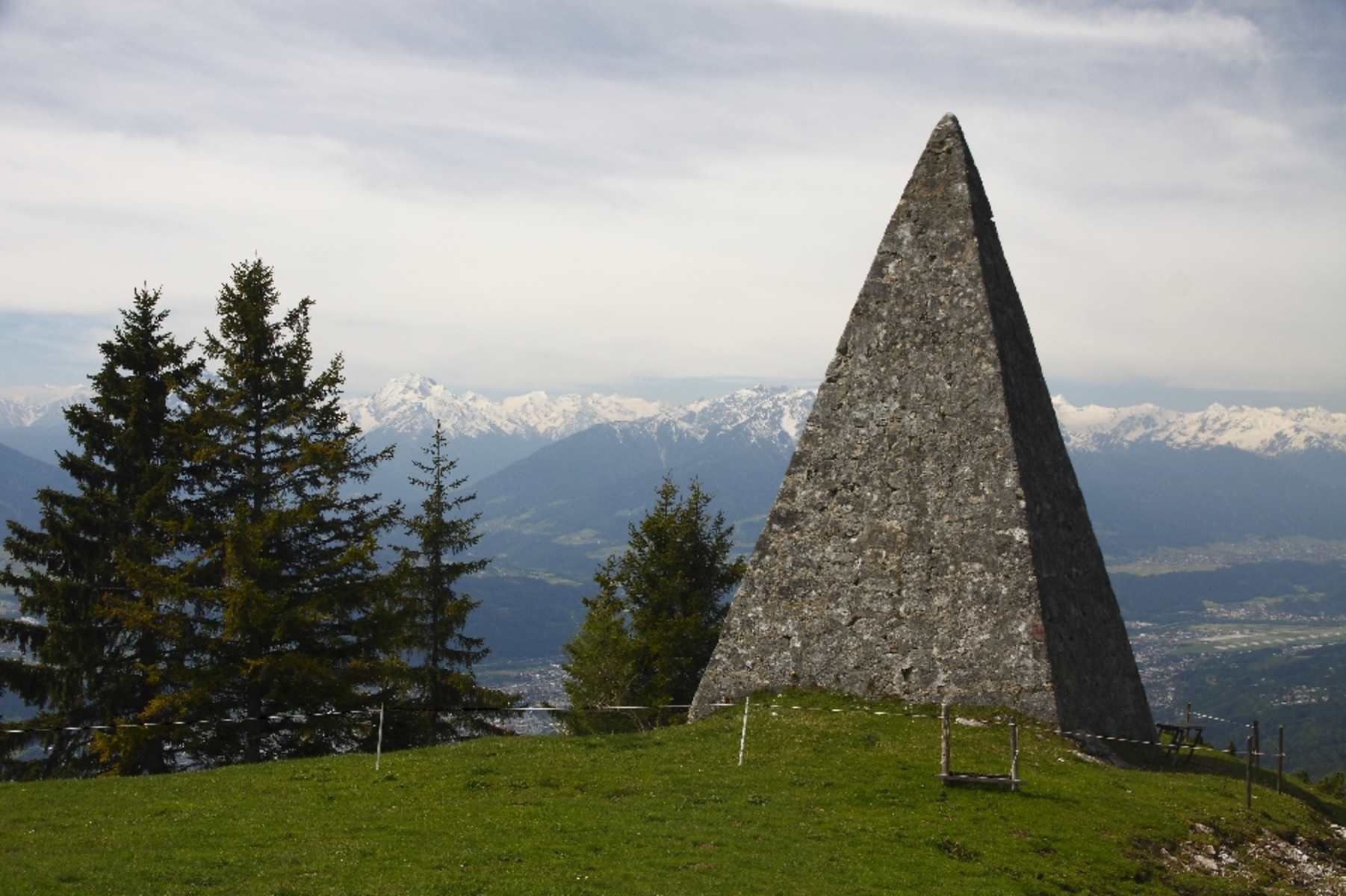 Umgekehrt ist der Abzweig in die Südflanke übrigens leicht zu verfehlen, da nicht beschildert. Man zieht für den Rückweg ohnehin die Kammverbindung zum Thaurer Zunterkopf (1.918 m) vor, besteigt damit nach kleinem Gegenanstieg noch eine Rückfallkuppe und setzt das Bergab durch lichte Latschenfelder fort. Ein erdiger Steig führt nur kurzzeitig etwas steiler zur Kaisersäule (1.700 m) die an den Besuch Kaiser Franz I. anno 1815 erinnert.