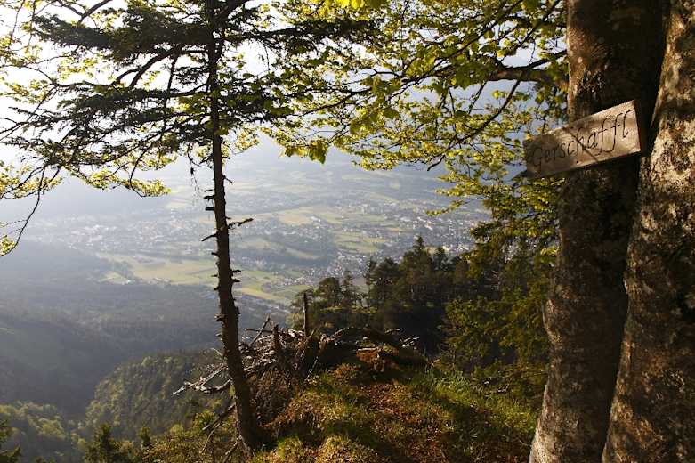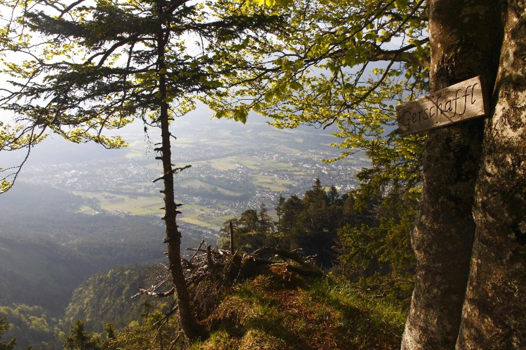 Vom Parkplatz Kapons ganz oben in Thaur geht es nach Beschilderung an der südseitigen Waldlehne empor. Beim Garzoantrögl passieren wir eine Quelle und kommen oberhalb auf eine Forststraße, um den Aufstieg rund 100 m links versetzt fortzuführen. Damit schräg hinauf zum Ochsner (1.083 m), einem Wegeck über dem Schluchteinschnitt, wo der Trenksteig abzweigt und unsere Route rechts abknickt.