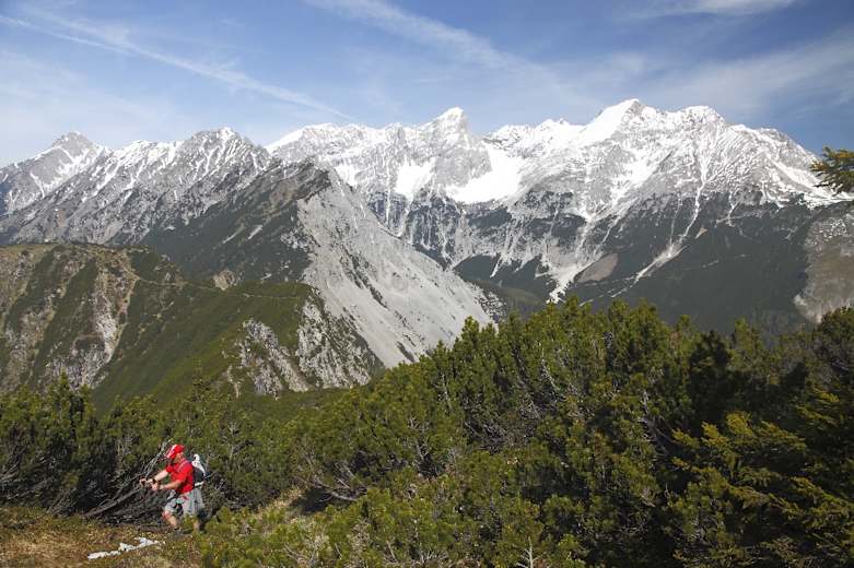 Sonnseitige Gipfelrunde über die Thaurer Alm in Tirol: Das Wort „Zunter" löst bei Bergwanderern meistens zwiespältige Gefühle aus, deutet es doch auf eher unbeliebten Latschenbewuchs hin. Man mache sich diesbezüglich schon mal auf den steilen, südexponierten Gipfelhang gefasst, wenn man die eher selten begangene Direktroute via Guggermauer einschlägt.