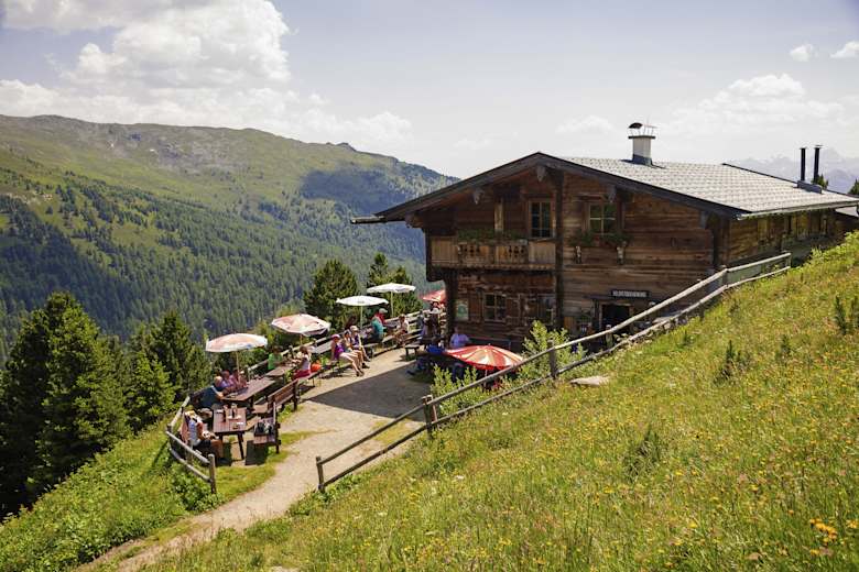 Gemütlich ohne allzu viele Höhenmeter geht es bis zur nächsten Einkehr - dem Almgasthaus Boscheben auf 2.030 m. Die kleine urige Hütte liegt idyllisch oberhalb des Viggartales - ein Abstieg zum Meißner Haus wäre möglich.