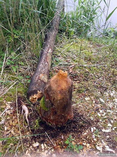 Umgestürzte Bäume lassen erkennen, dass im See Biber heimisch sind. Foto: Claus-Günter Frank, Bergverlag Rother