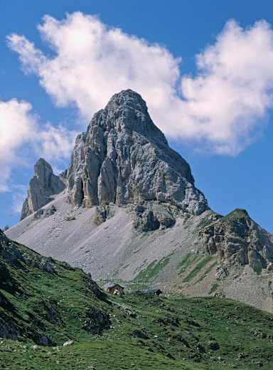 Zur Standschützenhütte geht es etwa 20 Min. bergab. Zur Großen Kinigat (Monte Cavallino) verlassen wir die Hütte in westlicher Richtung.