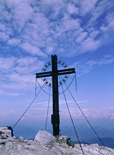 Eine „Königstour“ im Osttiroler Teil des Karnischen Hauptkammes: Auf 2.689 m, am höchsten Gipfel in diesem Bereich in Tirol steht seit 1979 das mächtige Friedenskreuz. „Nie wieder Krieg“ kündet das von italienischen und österreichischen Bergsteigern errichtete Mahnmal, wo jeden August eine Bergmesse abgehalten wird.