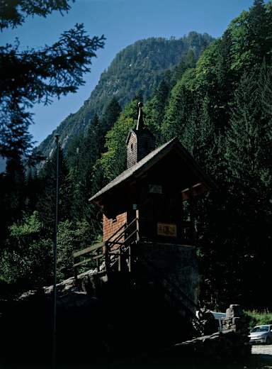 Hubertuskapelle, 1.114 m, weitere P Untere Wolayeralm (1.250 m) und Talschluss (Schranke, P mit Vorbehalt)