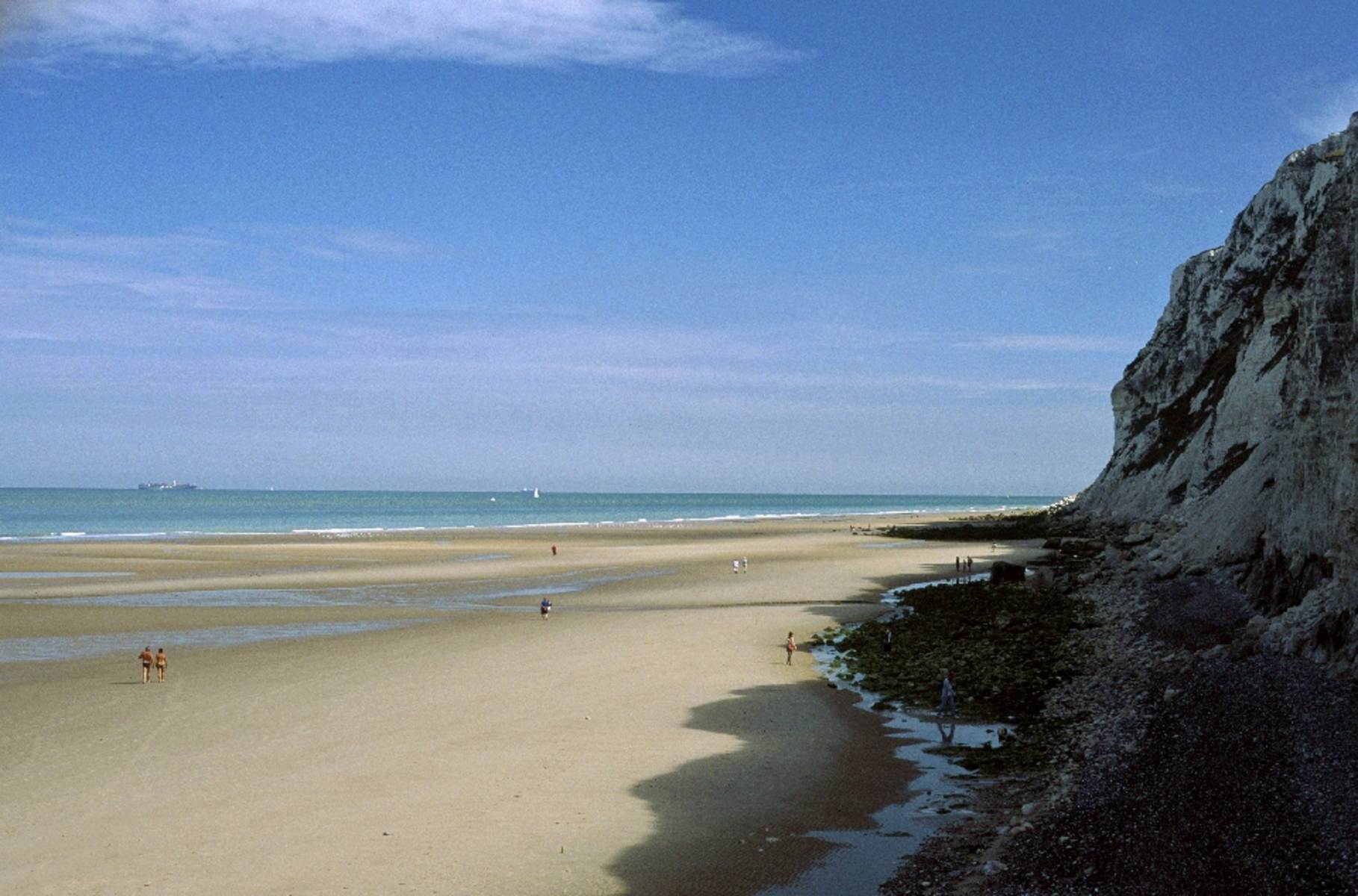 Grandiose Ganzjahres-Sicht auf England vom Norden Frankreichs: Eindrucksvoll erheben sich die weißen Kalkfelsen des Kaps Blanc Nez an der engsten Stelle des Ärmelkanals.