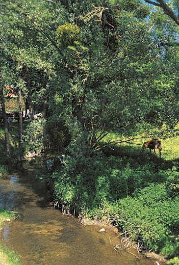 Von der Brücke über die Serre gehen wir auf der D 520 wenige Meter nach Norden und nehmen gleich nach der Einmündung der D 530 von rechts den Wiesenweg „Val de Serre" (Markierung: eine Eule) links, welcher der ehemaligen Eisenbahntrasse folgt. Wir passieren eine waldige, meist feuchte Zone mit einem Weiher.