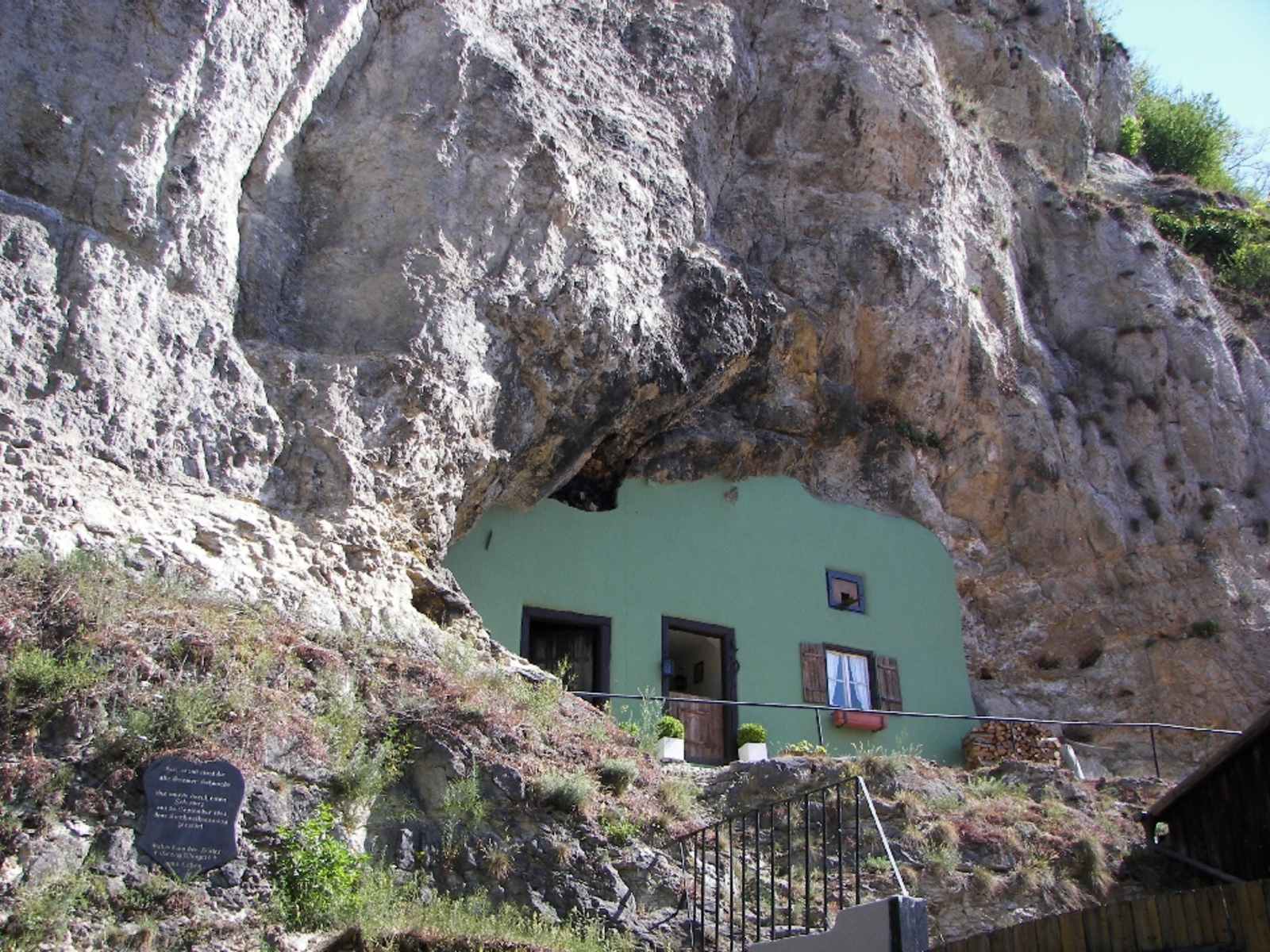 Am Eicher Kircherl vorbei steigen wir hinunter in den Ort Eich. Rechts gelangen wir zum Gasthaus „Zum Eicherberg“ am Ortsende. Kurz rechts und gleich wieder links den Berg hinauf führt ein mit Ritter und 3 markierter Abkürzungsweg. Wer aber das Naturschutzgebiet Eichenberg mit seinem herrlichen Jurafelsen bestaunen will, geht unmarkiert nach links und biegt dann rechts in das fast nur von Radlern befahrene Sträßchen ein, das am Fuß des Naturschutzgebietes entlangführt. Es gibt leider keinen eigenen Wanderweg, das Betreten des Naturschutzgebietes Eichenberg ist verboten.