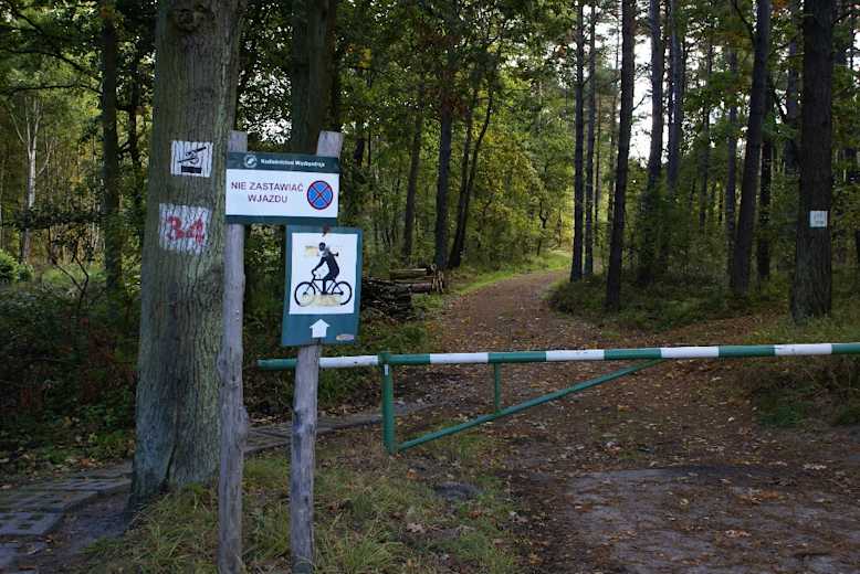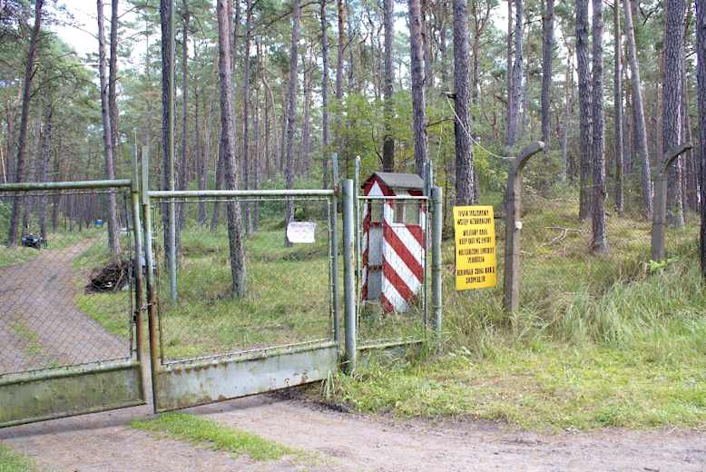Auf dem mit grünem Fahrrad markierten Radweg R 10 wandern wir durch abwechslungsreichen Laubwald. Nach einer halben Stunde treffen wir auf einen Wegweiser mit einer Infotafel, die über die Vergangenheit dieses Gebiets aufklärt. Der gesamte Wald zwischen Swinemünde und Misdroy wurde bis Ende des 20. Jahrhunderts militärisch genutzt; davon zeugen u. a. die Reste der vielen Artilleriestützpunkte, die die deutsche Armee im Verlauf der Weltkriege errichtet hat. Während des Kalten Kriegs unterhielt die polnische Armee hier Verteidigungsanlagen, die gegen die NATO gerichtet waren.
