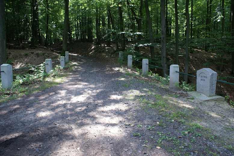 An der Eiche wechselt die Markierung, wir gehen mit einem blauen Strich geradeaus. Auf einer Forststraße, die dem Hägebach (Leśna) folgt, erreichen wir nach 20 Minuten die Wilhelm-Meyer-Brücke (Most Wilhelma Meyera) mit Rastplatz und Infotafel. Wilhelm Meyer-Schwartau war von 1891 bis 1921 Stadtbaurat in Stettin, wo unter seiner Leitung u. a. die Hakenterrasse gebaut worden ist.