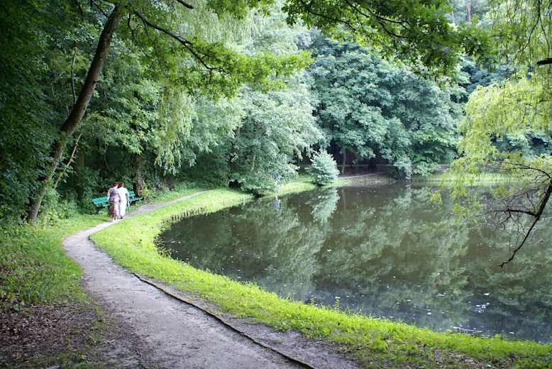 Hier gehen wir nach rechts, biegen nach wenigen Schritten noch einmal rechts in den Wald ein und wandern am Nordufer des kleinen Waldsees Jezioro Uroczysko zum Glambecksee (Jezioro Głębokie). Von hier bringt uns die Straßenbahn zurück ins Stettiner Stadtzentrum.