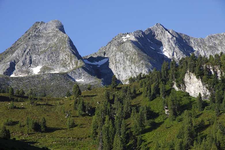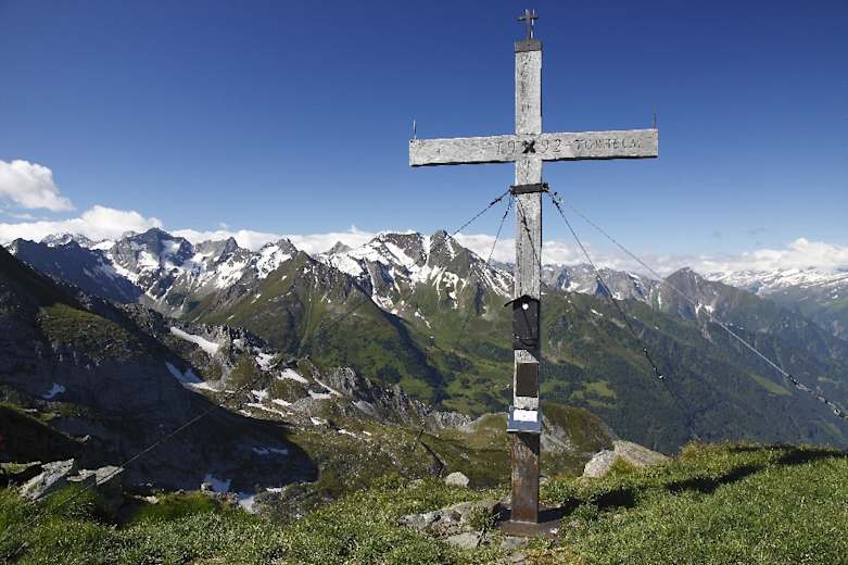 Buchstäblicher Höhepunkt ist das Gipfelpanorama: nach Norden durchs Zillertal hinaus zum Rofan, im Gegenlicht die viel gezackte Reichenspitzgruppe mit dem Venedigergebiet dahinter und im Südwesten die Mayrhofener Bergwelt mit dem Ahornkamm wunderbar im Profil. Der Seespitz, in früheren Auflagen noch als Hauptziel ausgewiesen, ist hier nur eine topografisch eher unbedeutende und aussichtsmäßig etwas weniger ergiebige Zugabe, die freilich mit der schwierigsten Passage der Tour aufwartet. Denn wir wollen ja beim Rückweg durch den idyllischen Schwarzachgrund absteigen.