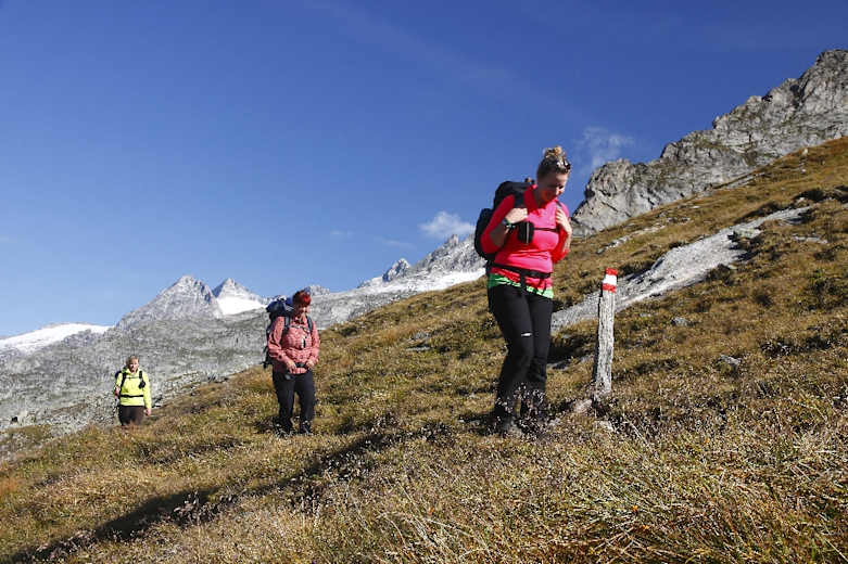 Der Hannemannweg führt eigentlich noch weiter südwärts bis zum Heilig-Geist-Jöchl, 2.658 m, einem Übergang nach Südtirol (bis dorthin weitere 1:30 Std. ab Abzweig).