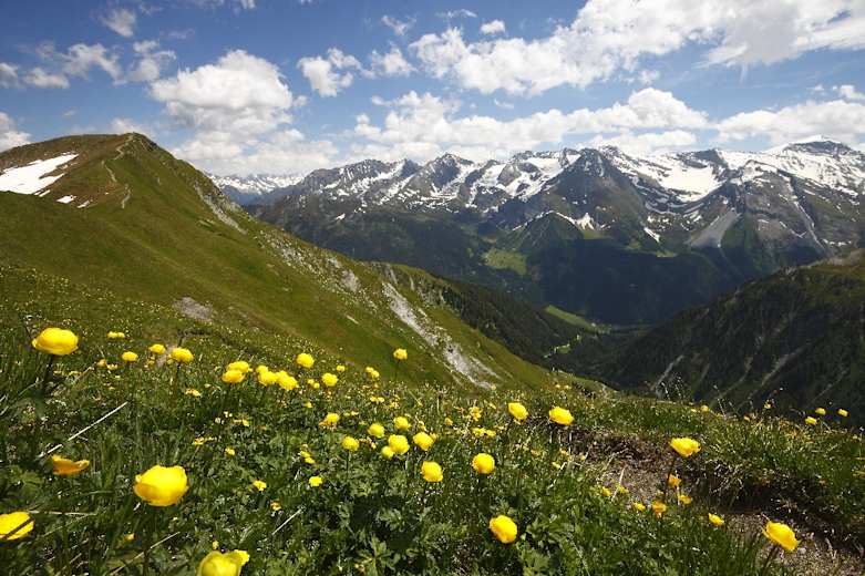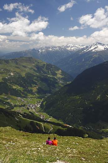 Von Lanersbach schweben wir zur Eggalm, 1.950 m, hinauf und wenden uns im Pistengebiet mit der breiten Trasse bergwärts. Hinter der höchsten Skiliftstation wird diese von einem Steig abgelöst, der über den Ostrücken – zuletzt etwas aufsteilend – bis zum Gipfel der Grüblspitze, 2.395 m, begangen wird.