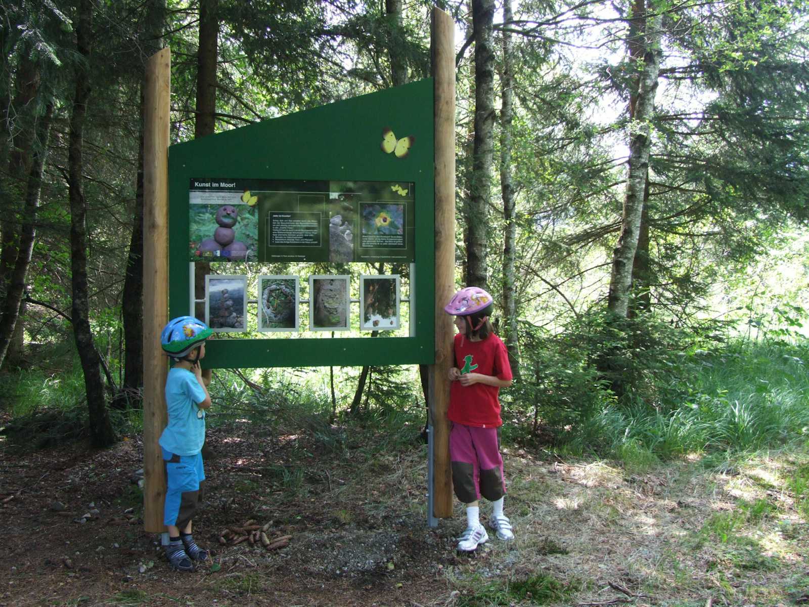 Der Rückweg bietet die Möglichkeit in der Nähe des Gasthofs Schwarzberg auf dem Moor Erlebnis Pfad zu wandeln. Es gibt hier interaktive Schautafeln, und man bekommt äußerst interessante Einblicke in Flora und Fauna des Moors.
