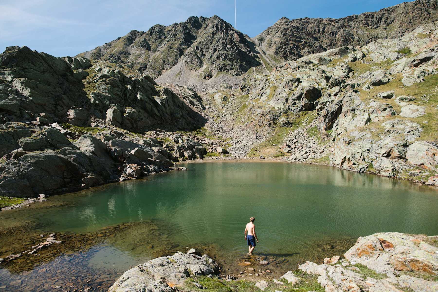 Ganz am Ende des Ötztales in Tirol führt das „geheime Tor" mit der Hochalpenstraße über das Timmelsjoch. Von dort führt der Weg, immer auf einer Höhe von über 2.400 m über dem Meer, zum Brunnenkogelhaus schon zu den Stubaier Alpen gehörend. Mit wunderbarem Blick auf den glasklaren Wannenkarsee und auf mehrere Dreitausender der Ötztaler Alpen eine lohnende, aber auch relativ schwere Tour in den südwestlichen Stubaier Alpen.